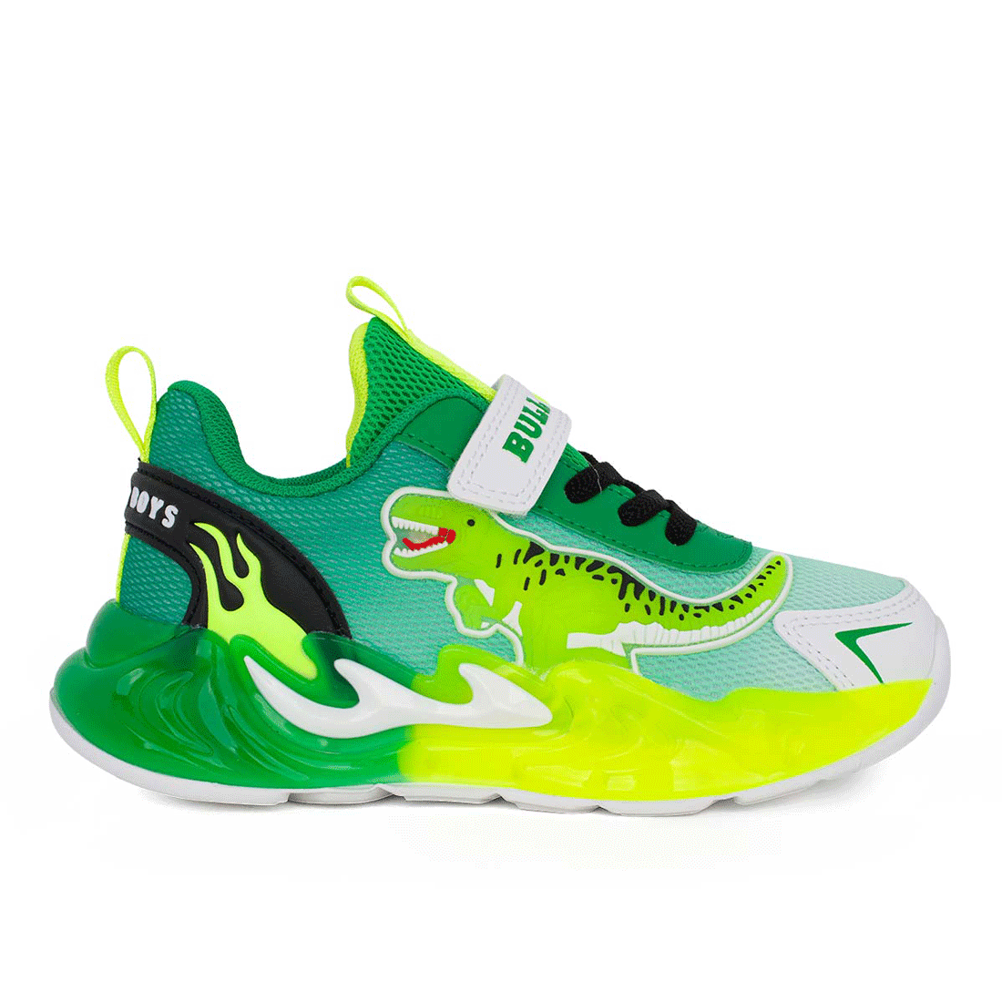 Bull Boys DNAL5117-VE01 JURASSIC REX Αθλητικό για αγόρι με φωτάκια On/Off σε ύφασμα και συνθετικό υλικό Λευκό-Κίτρινο-Πράσινο