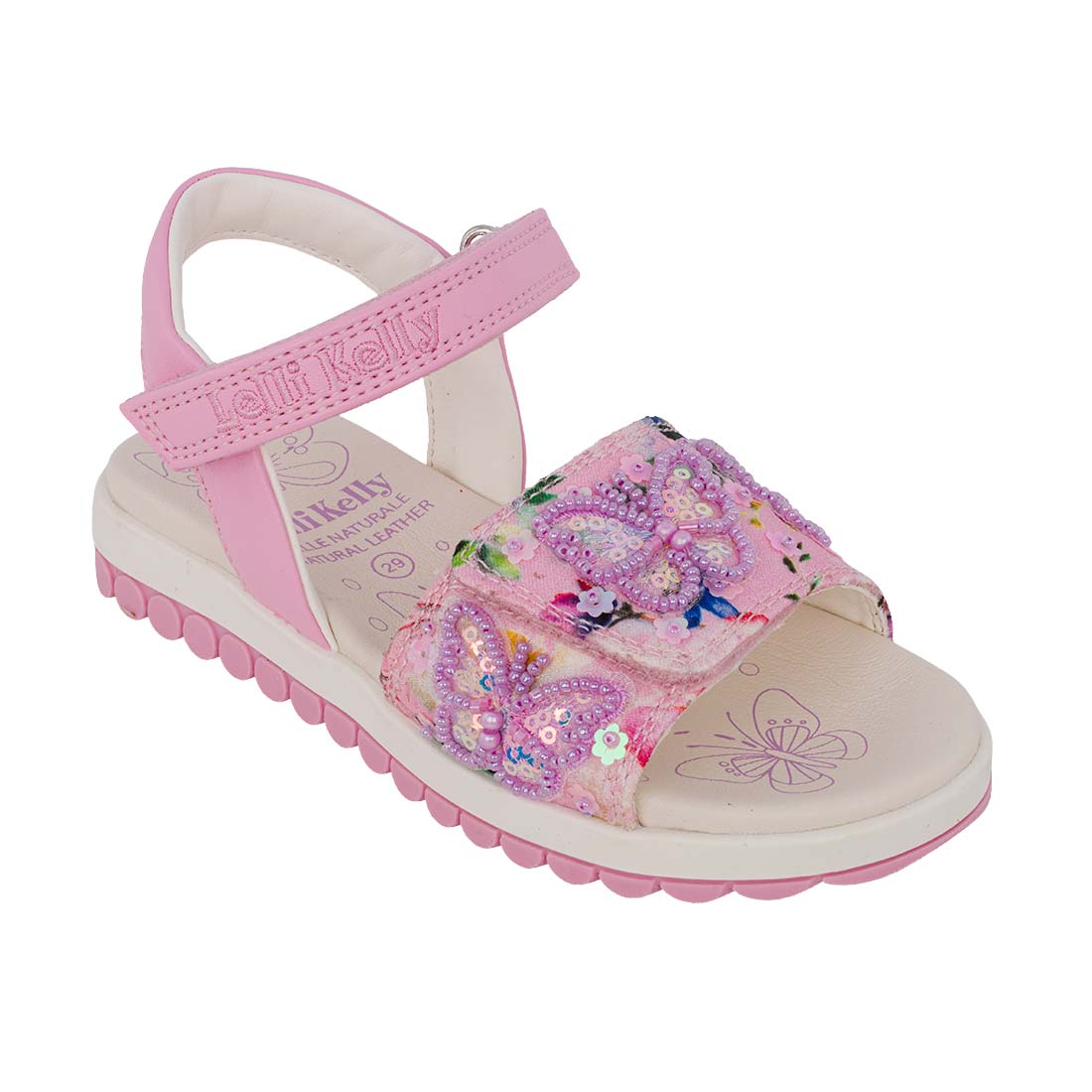 Lelli Kelly LKCD5501-RO02 SERENA Πέδιλο για κορίτσι σε δέρμα και ύφασμα Πολύχρωμο-Ροζ