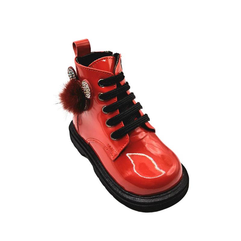 Ricco 257 A Μποτάκι για κορίτσι σε συνθετικό δέρμα Λουστρίν-Κόκκινο